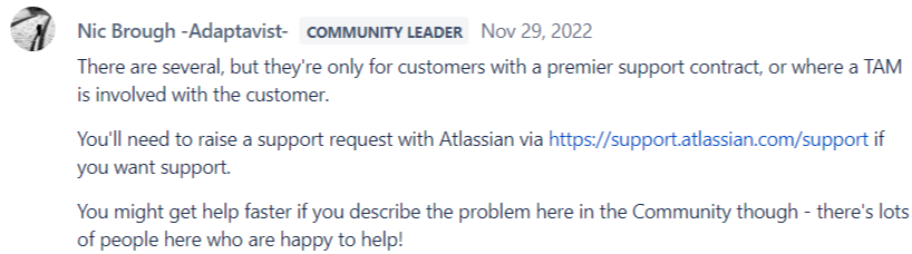 Basically, if you want any kind of support when you’re in a Jira pickle, you must be ready to pay for it.